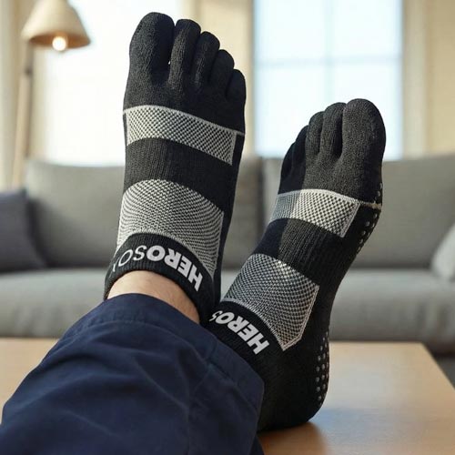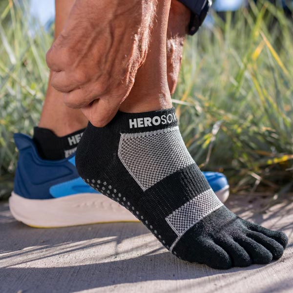 HEROSOX combines toe separation, DotGrip rubber, and 12 hours moisture-wicking in a single ankle sock.