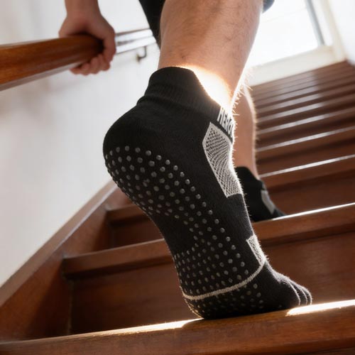 You walk to the bathroom at 2am and nothing slips.You cook in the kitchen on tile. The sock holds.